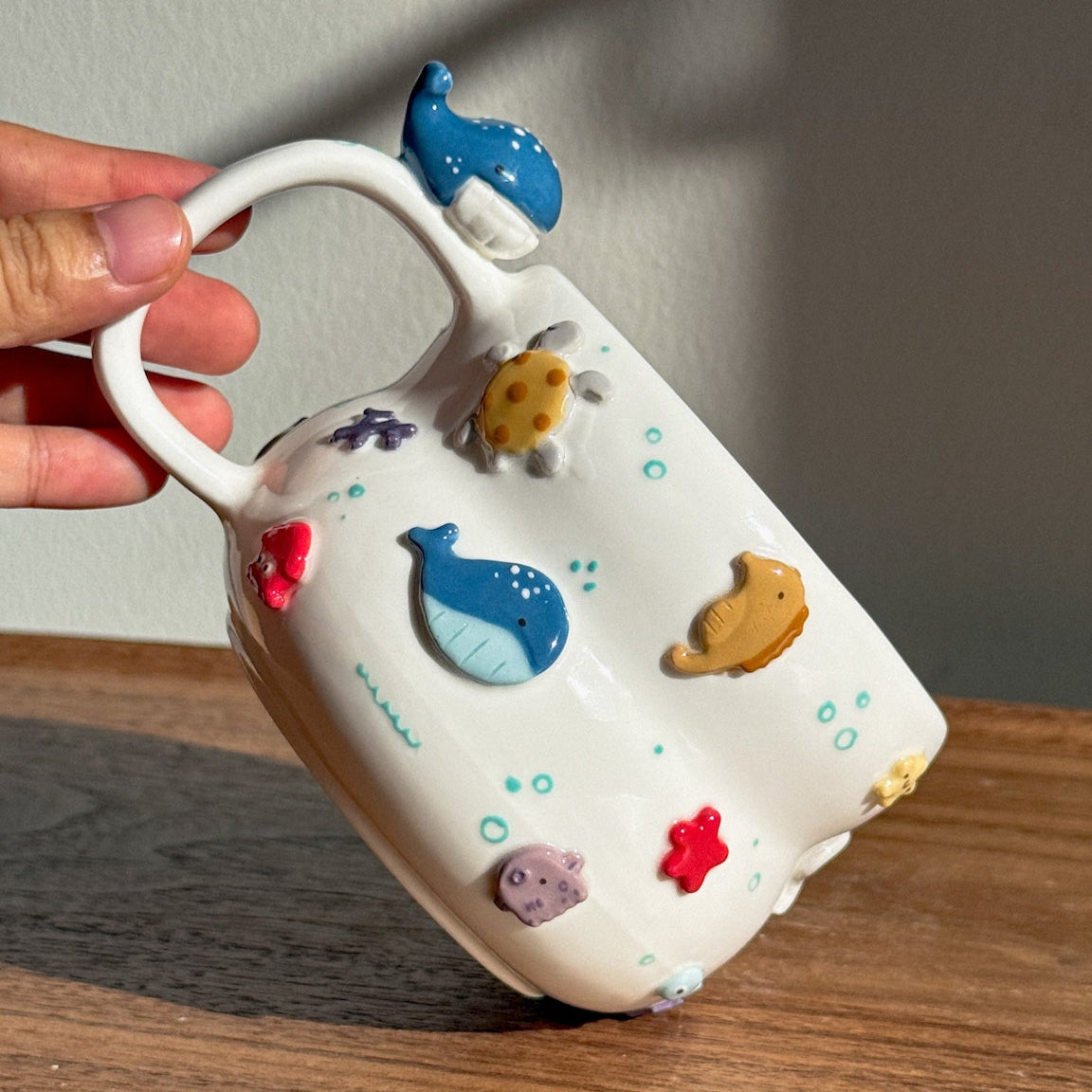 Ocean cup fluffy size with tiny whale on the edge