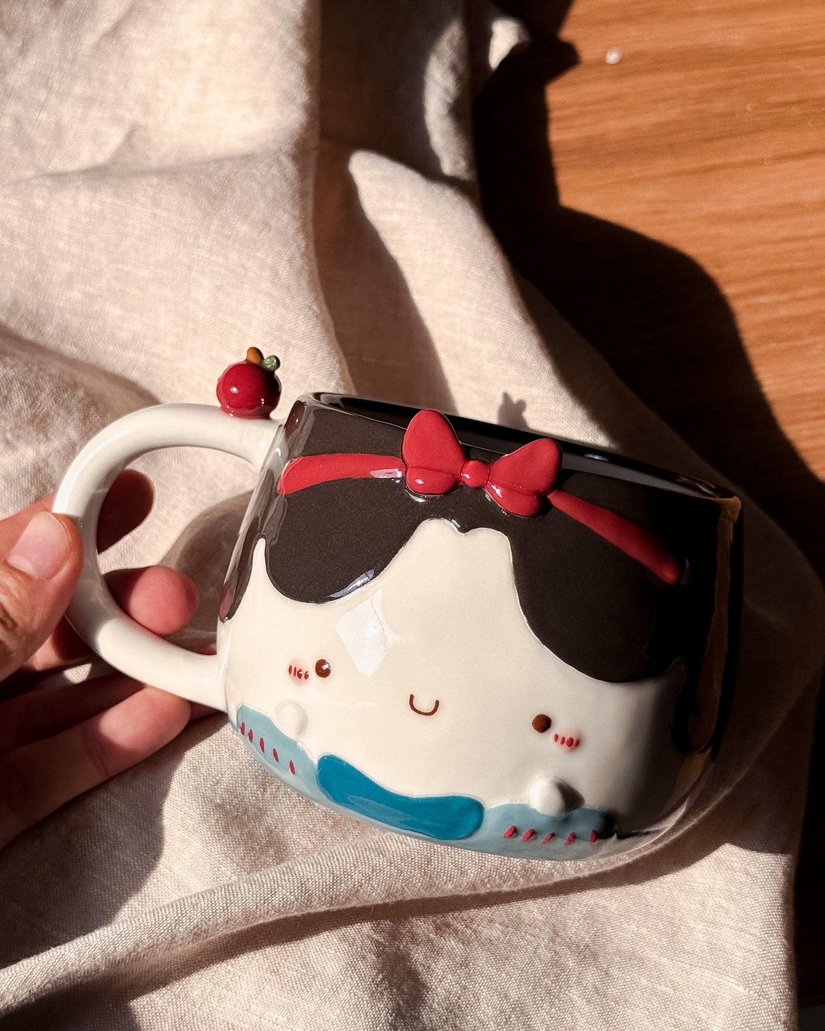 Each piece is hand-shaped and touched many times during decoration, especially when attaching small details. As a result, the rim may not be perfectly round after firing. These slight variations are part of the charm and authenticity of handmade ceramics.