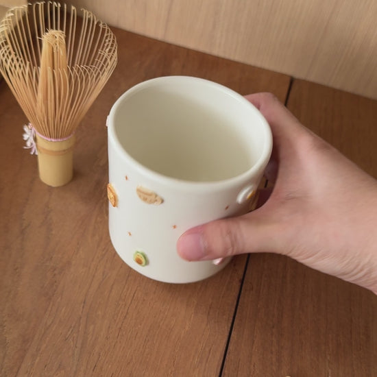 Each piece is hand-shaped and touched many times during decoration, especially when attaching small details. As a result, the rim may not be perfectly round after firing. These slight variations are part of the charm and authenticity of handmade ceramics.