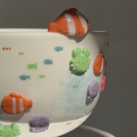 Each piece is hand-shaped and touched many times during decoration, especially when attaching small details. As a result, the rim may not be perfectly round after firing—but we carefully QC each item. These slight variations are part of the charm and authenticity of handmade ceramics.